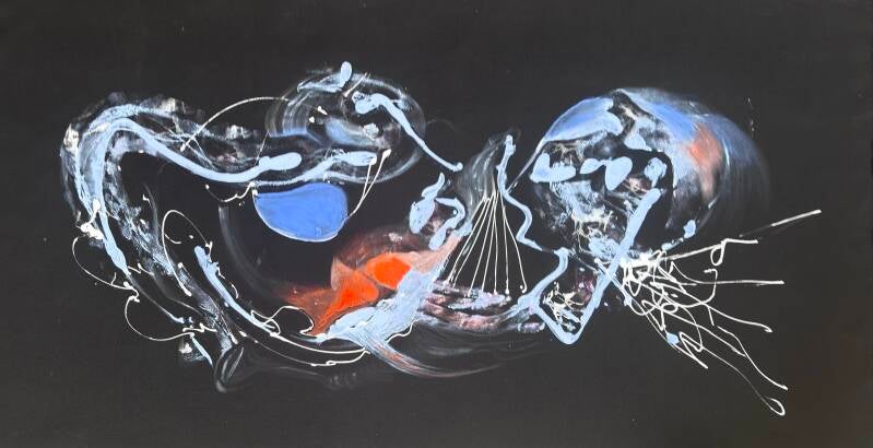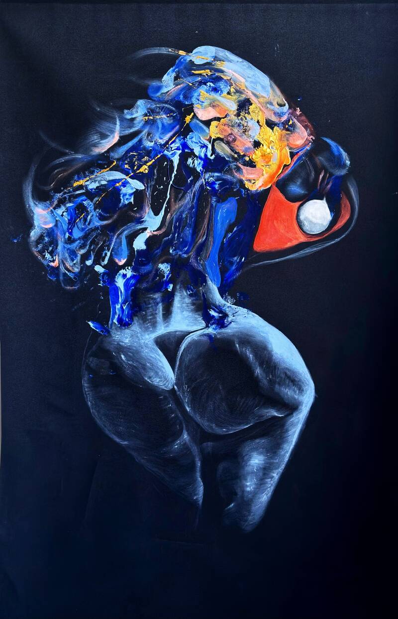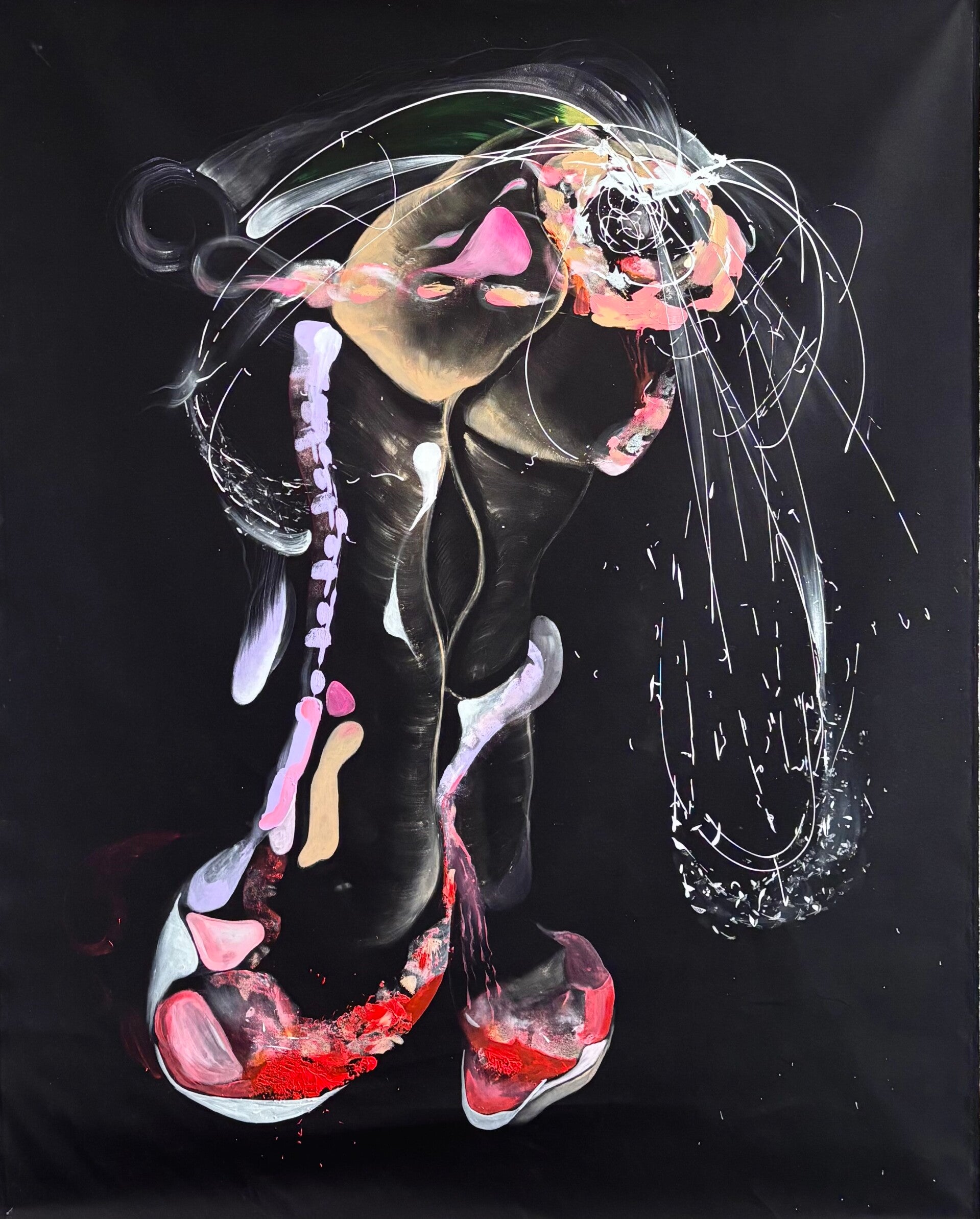 Part of the Black Series, this work emerges from a dark field where form appears before it is fully understood. The gesture opens like a body under pressure—unfolding, resisting containment.